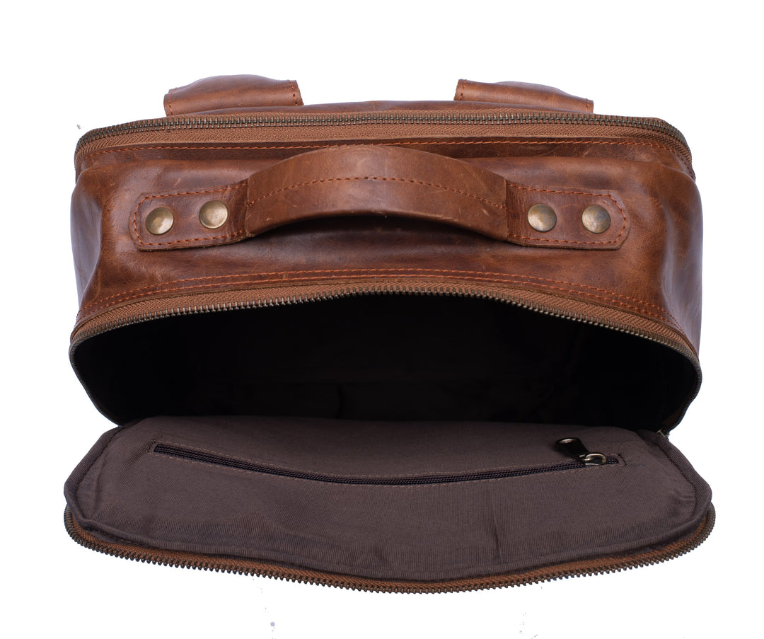 This Vintage finish back pack is trendy and practical. It has various compartments and it is stylish.
