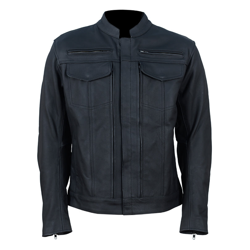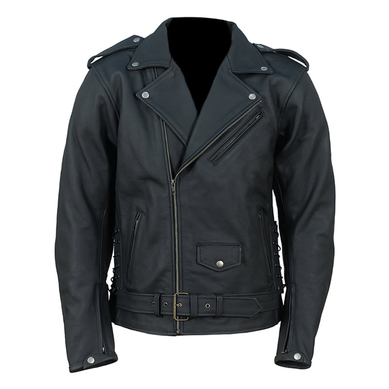 Our Motorcycle Jackets are made with heavy duty 1.2-1.3 mm thick and extremely tear-resistant cowhide leather. Heavy duty threading is utilized and all panels utilize safety stitching techniques. All leather jackets have a connecting zipper at the back and can easily be attached with a trouser. All armor used is CE level 1 certified and durable protective padding has been installed on the back, elbows and shoulders. Adjustable front straps and side stretch panels will ensure flexibility and pre-curved sleeves would definitely allow you to get into the right riding position.