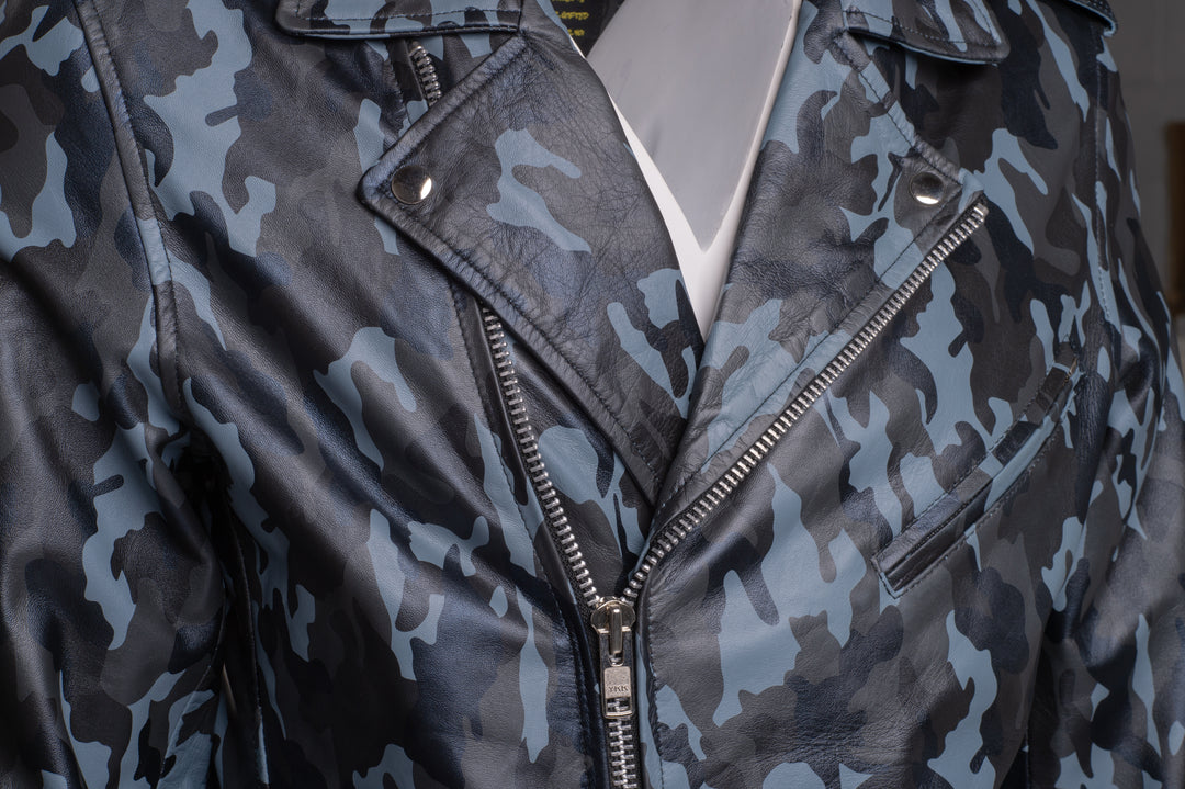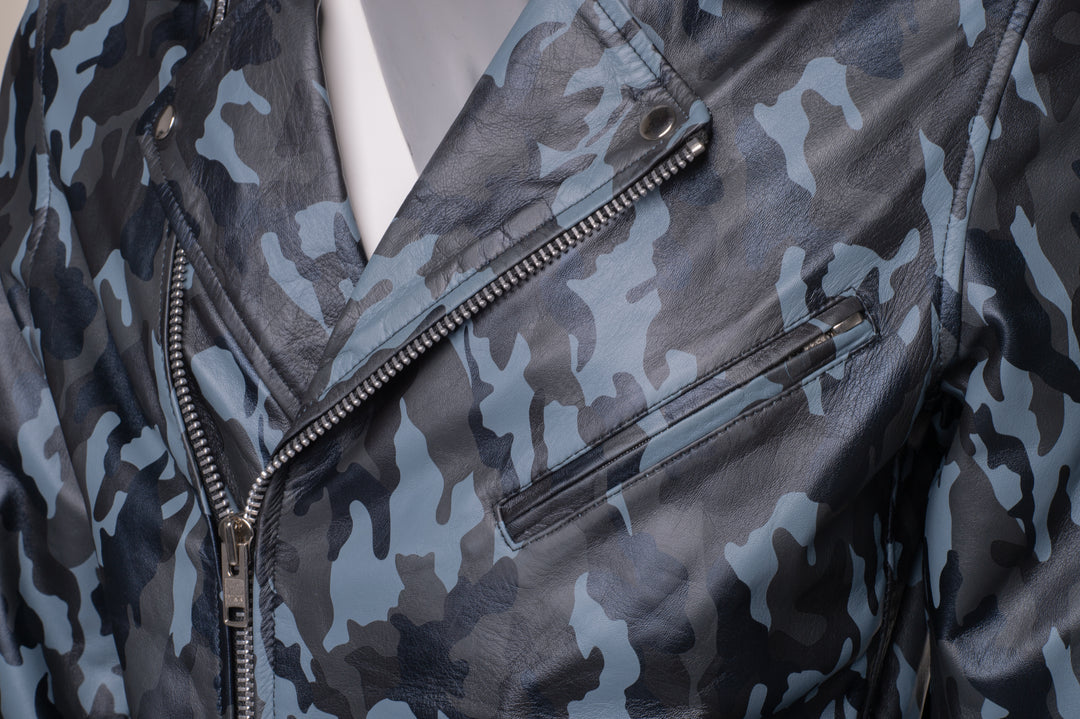 Adopt a style that can build a self-centered look and make you appear intensely charming. This Aman Dowling's Blue Camouflage biker-style jacket can provide you with such a look. This phenomenal jacket has Side Zipper Closure, Notch lapels with press studs collar style, open Hem zipped cuffs, 1 pocket inside and 3 functional zipped pockets & one coin pocket