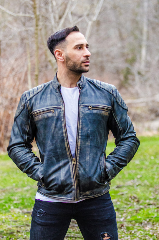 Do you want to live it up this winter season? Here to satisfy all your fashion needs is our Hendrix Distressed Leather Jacket with Collar Belt. One of the most eye-catching features of this jacket is the buckle belt collar with a front zipper closure. In addition, it has open hem zipped cuffs, 2 pocket inside, and 4 zipper pockets outside.