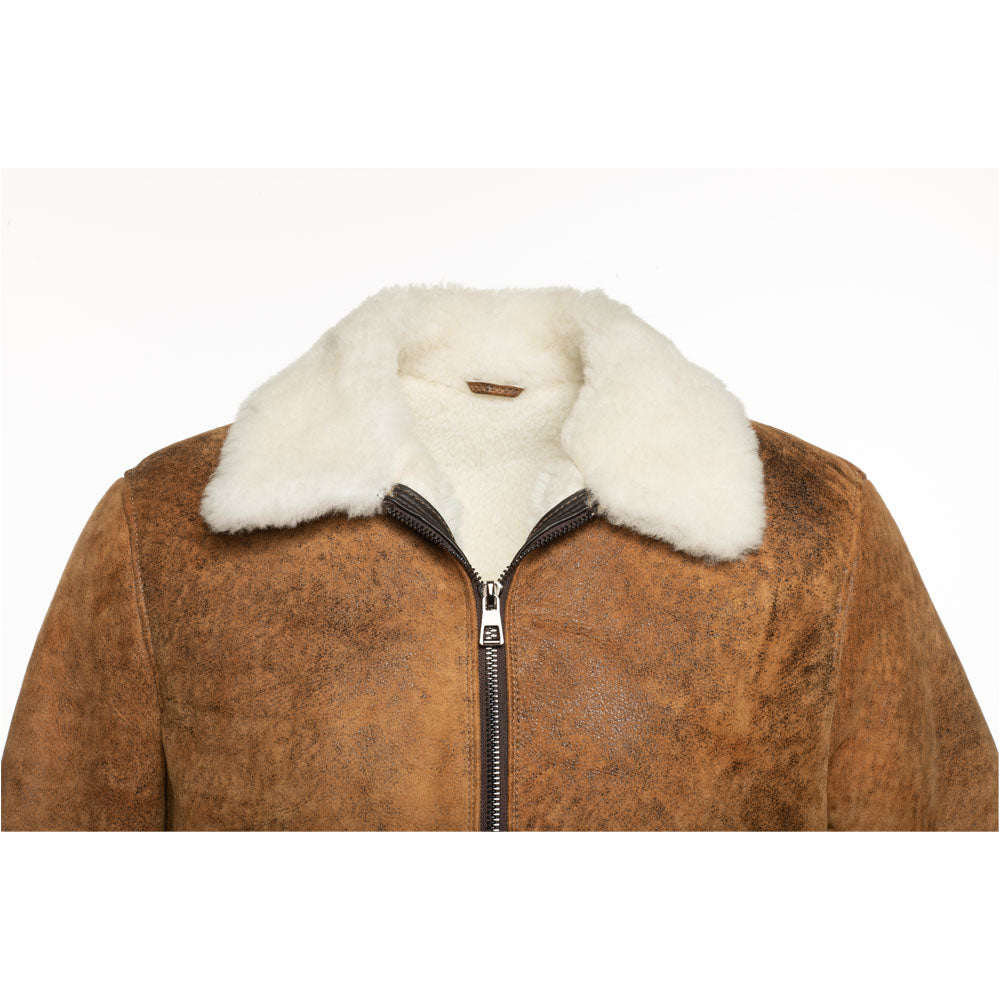 Are you looking for a stylish and versatile jacket that can be worn with any outfit? Look no further than Lucian's distressed brown A2 Bomber shearling jacket.