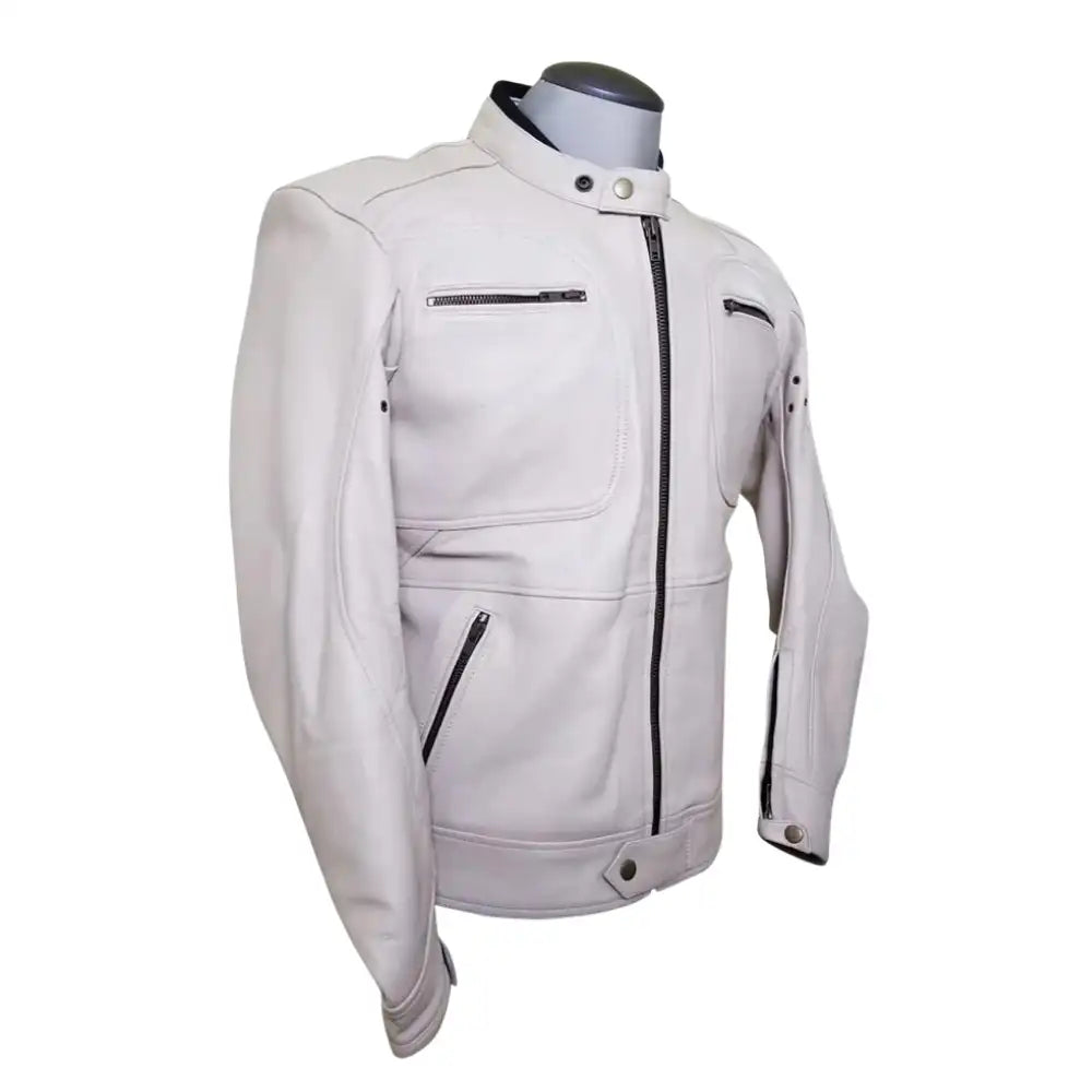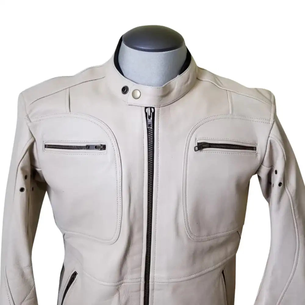 Beige Armored Leather Motorcycle Jacket